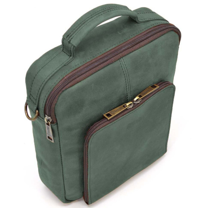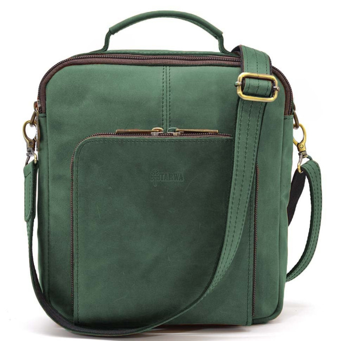 Мужская сумка на плечо с ручкой лошадиная кожа RE-6016-3md TARWA. Одно основное отделение плюс передний карман накладной, кожаная комфортная ручка, съемный кожаный ремень через плечо. Украинский бренд TARWA.