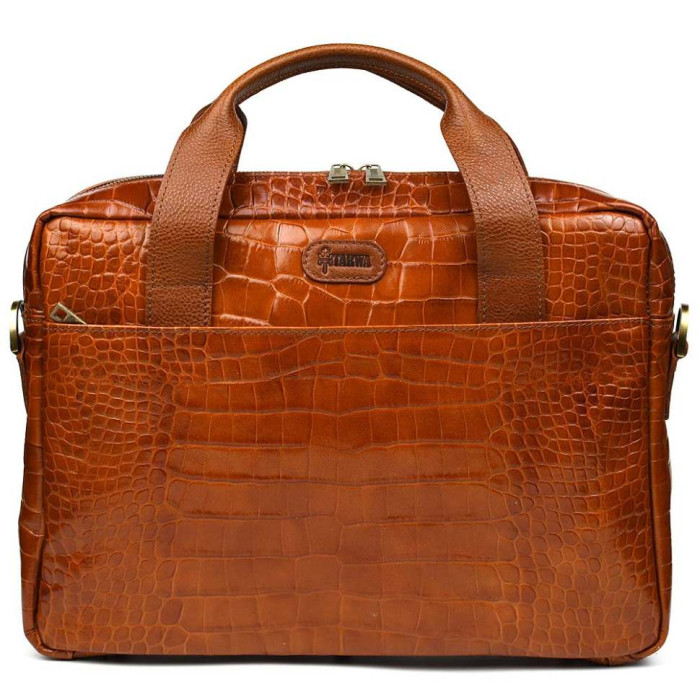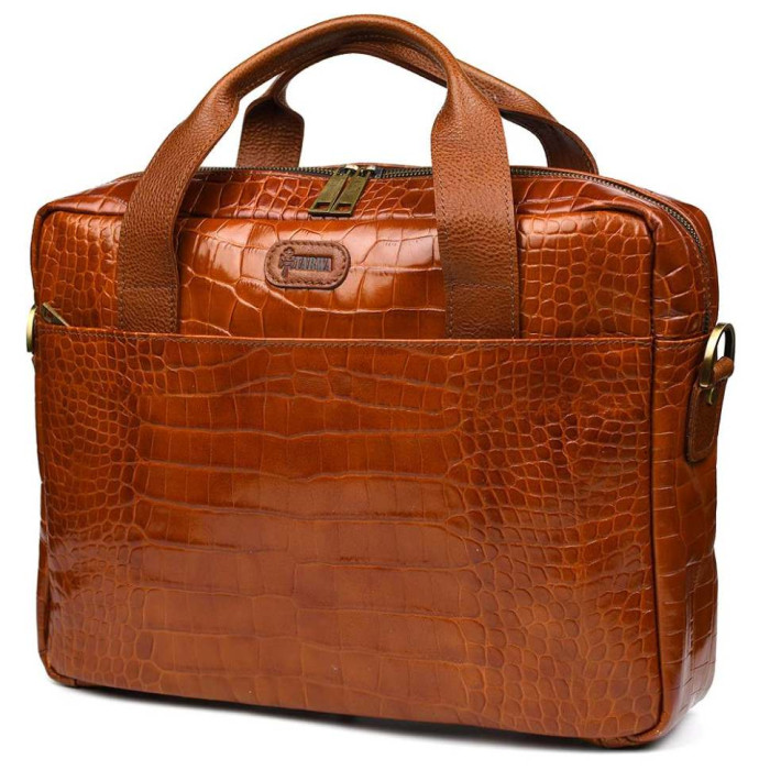 Красивая сумка-портфель из натуральной кожи с тиснением под рептилию REP1-1813-4lx, от украинского бренда TARWA. Интересная модель для работы, выполнена в деловом стиле. Предназначена для хранения и переноски ноутбука до 15" и документов, для чего предусмотрен внутри специальный уплотненный карман-отсек. Кожаная сумка имеет одно отделение на металлической молнии.