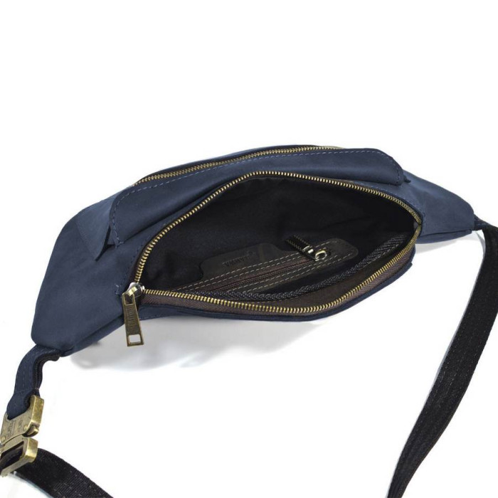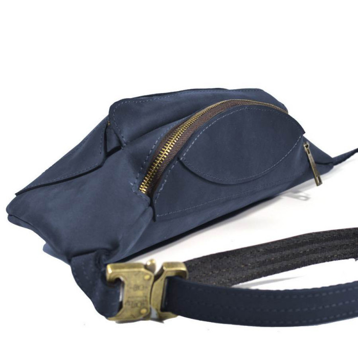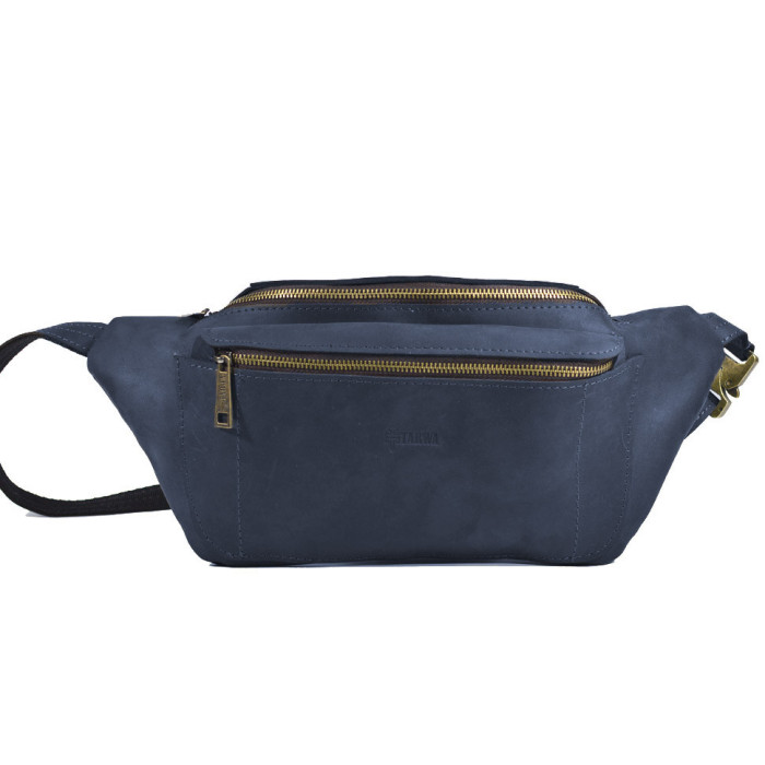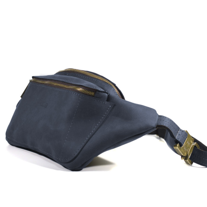 Сумка бананка напоясная синяя кожаная, сумка на пояс TARWA RK-3012-3md в синей коже крейзи хорс, производство Украина.
