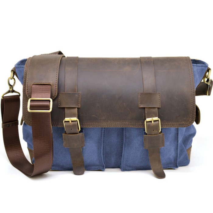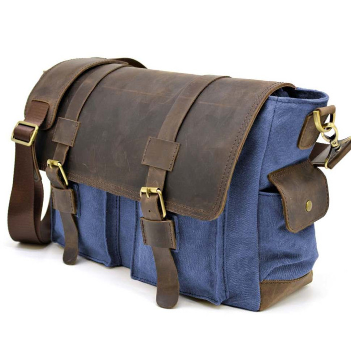 От украинского бренда TARWA. Стильный аксессуар для мужчин. Изделие имеет одно основное отделение, внутри которого дополнительный отсек для ноутбука или планшета. Вмещает формат А4. Также, есть два дополнительных кармана, и еще один на молнии. На задней стороне сумки присутствует крепление для ремня. На лицевой стороне также имеется два кармана, прикрытых кожаным клапаном. Торцевые стороны изделия оснащены двумя карманами с клапанами. Универсальная сумка, которая подойдет, как и для повседневного использования, так и для поездки.