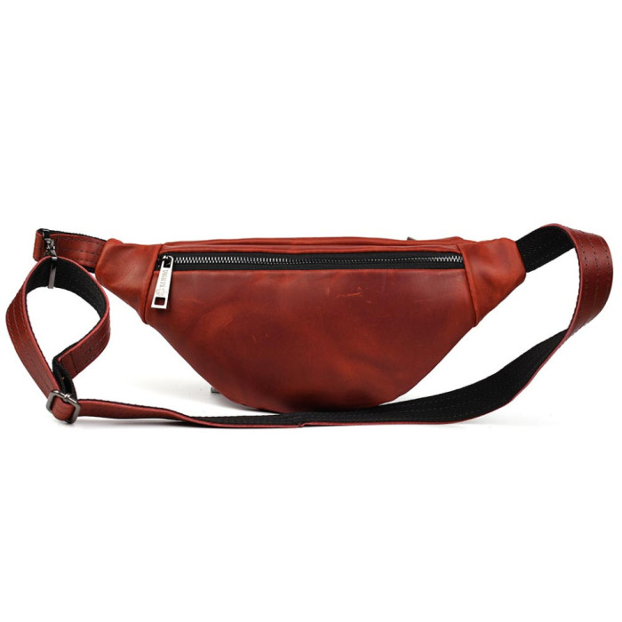 Бананка среднеразмерная, полностью кожаная с кожаным двухкомпонентным ремнем и металлическим галантерейным фастексом.