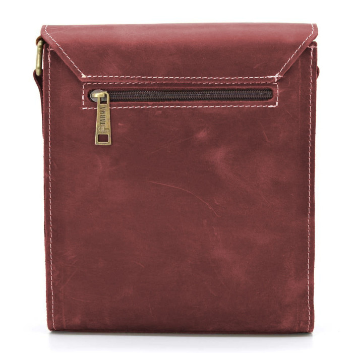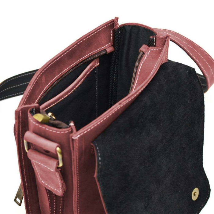 Изделие состоит из одного отделения, внутри которого имеется карман на молнии для личных документов и еще один накладной открытый карман для телефона, например. Сумка застегивается на молнию и сверху накрывается клапаном с магнитной кнопкой. На клапане присутствует гравировка с логотипом производителя. Под клапаном располагается практичный, откидной, вместительный карман на молнии с внутренними кожаными отсеками, для пластиковых карт. На задней стороне изделия находится еще один карман на молнии. Сумка наделена кожаным, регулирующимся по длине ремешком с текстильной основой, предохраняющей от растяжения.