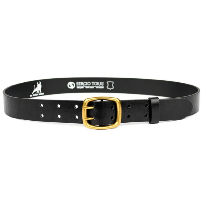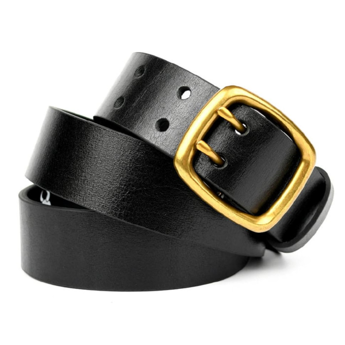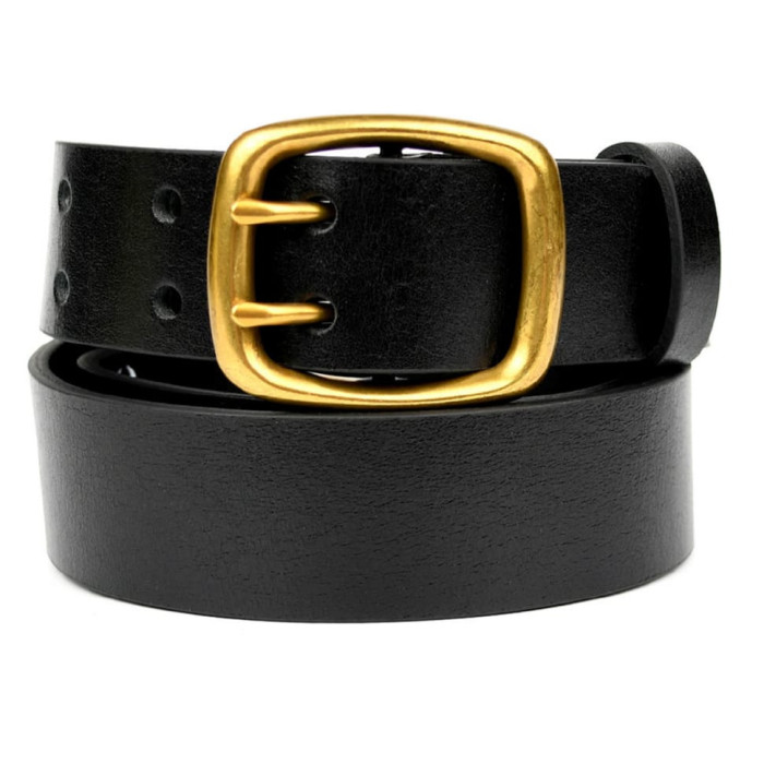 Ремень из кожи буйвола st044620 черный 40мм гладкий на два язычка Ремень подходит как для брюк, так и для джинсов. Цвет кожи - черный, фактура гладкая. Пряжка классическая, металлическая, цвет антик (бронза)