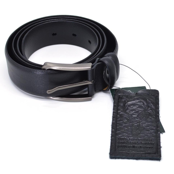 Ремень из кожи оленя 35мм черный, классическая пряжка st228674 никель. Ремень подходит как для брюк, так и для джинсов. Цвет кожи - черный. Пряжка классическая, металлическая