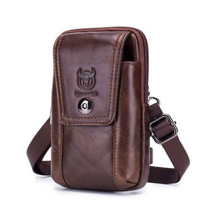 Кожаная напоясная сумка T0071 от бренда BULL может также носиться и как сумка на плечо. Состоит из основного отделения и кармана на кнопке. Во внешнем кармане расположены отделения для 2 карточек. В компект входит регулируемый ремешок из текстиля. На лицевой части клапана нанесен логотип бренда Bull.