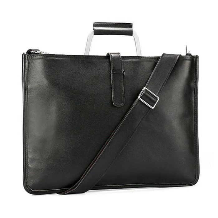Мужская кожаная папка-портфель с металлическими ручками и хлястиком tid14121 Tiding. Вмещает формат А4. Смотрится очень стильно. Изделие состоит из трех плоских отделений. Внутри центрального, застегивающегося на молнию, располагается множество кармашков: два открытых, один на молнии, а также уплотненная перегородка для хранения, например планшета. Остальные два отделения фиксируются при помощи магнитной кнопки. Аксессуар имеет две маленькие удобные ручки, а также в комплектацию входит наплечный ремешок.