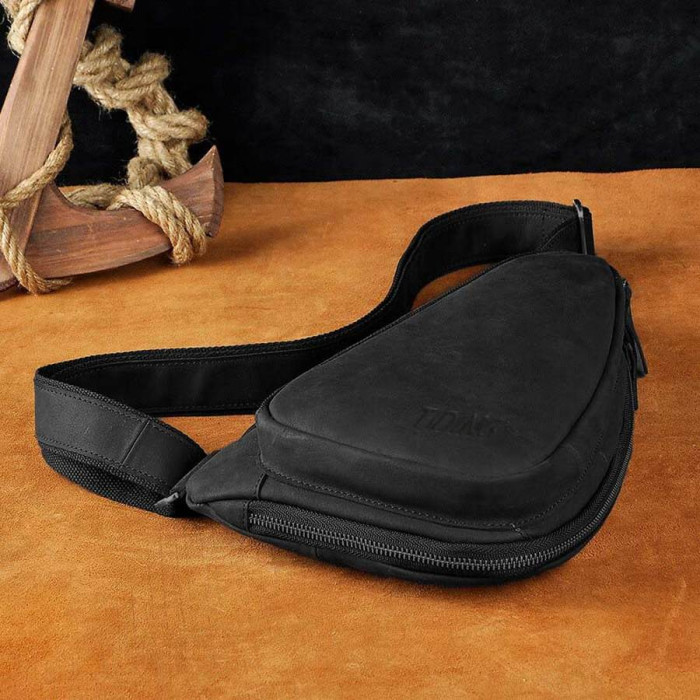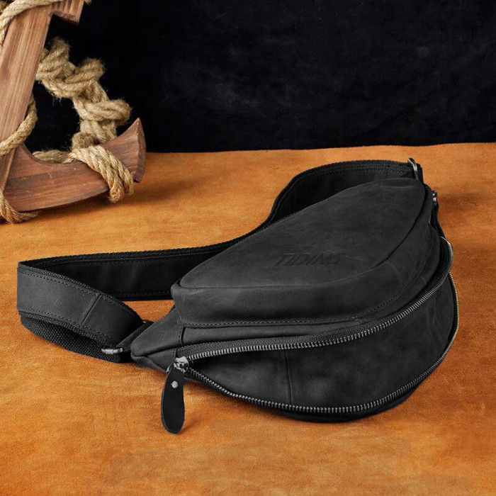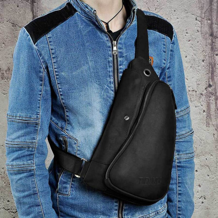 Кожаный рюкзак слинг TIDING tid3026A черный. Рюкзак на одно плечо изоготовлен из натуральной кожи Crazy Horse. Стильный, модный и удобный аксессуар на каждый день, а также для прогулок и путешествий. Поможет сохранить ваши ценные вещи и всегда иметь свободные руки.