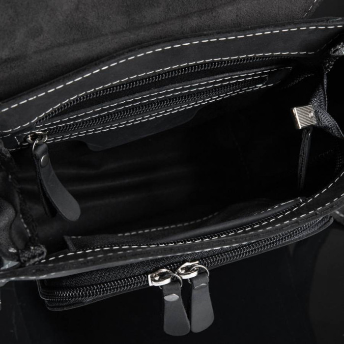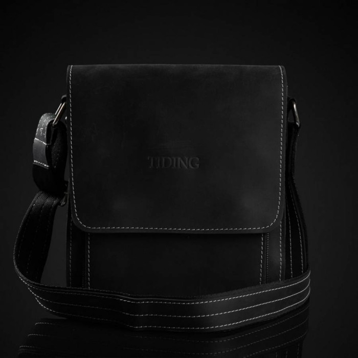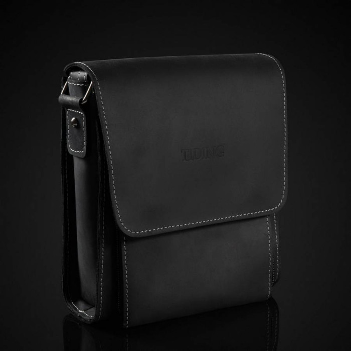Кожаная мужская сумка через плечо, от бренда Тайдинг, модель 3027, выполненная в благородном черном цвете. Именно данная модель включает в себя практичность и изысканность! Производитель позаботился о долгосрочном качестве товара, сделав ее полностью из надежного материала - лошадиная кожа, которая придает всему образу изюминку. Будьте уверены, что с данной сумкой ваши самые нужные вещи (телефон, документы, ключи и пр.) будут в полной безопасности и сохранности. Сумка включает в себя: длинный ремень, внешний и внутренний карман на молнии, а также 1 большой отсек внутри. Сумка великолепно сочетается как с базовыми вещами на каждый день, так и с вечерними образами, например поход в кино, на концерт и т.д.