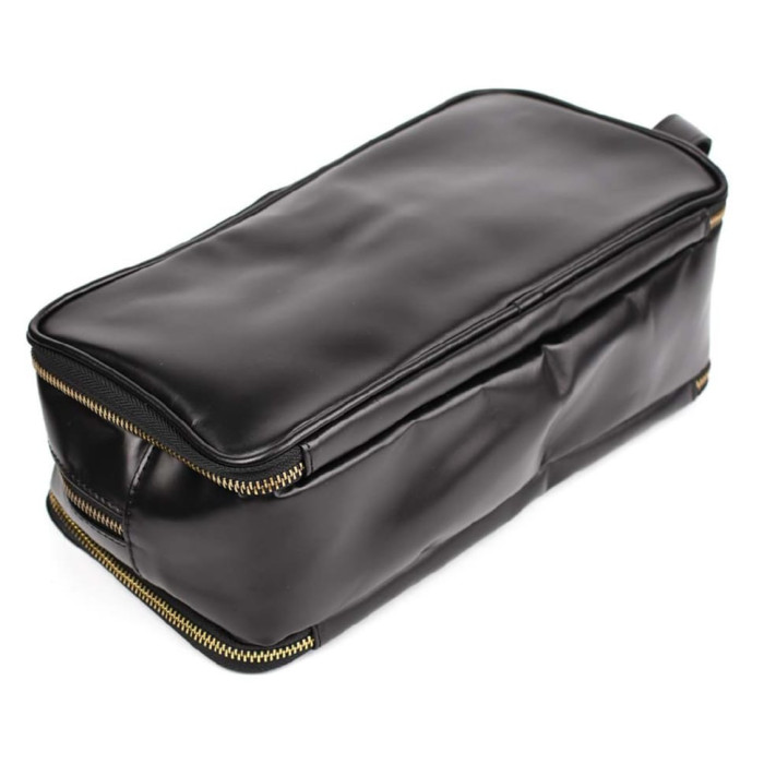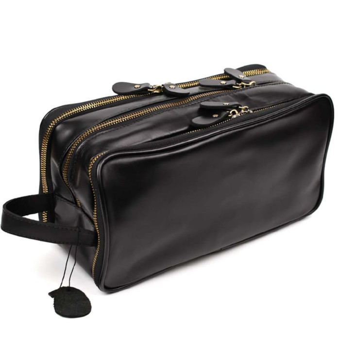 Хорошая практичная косметичка из высококачественной натуральной кожи с отличными эксплуатационными характеристиками. Имеет просторное основное отделение, которое закрывается на надежную молнию. Сбоку присутствует кожаная ручка для переноски изделия в руках. Упакована косметичка в чехол.
