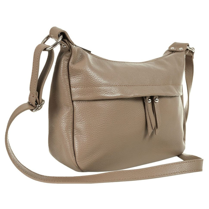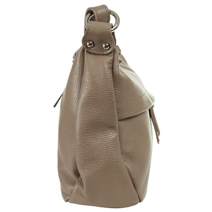 О товаре Женская сумочка Virginia Conti выполнена из натуральной кожи.; Особенности: имеет 1 основное отделение на молнии, внутри три кармана. Подкладка - текстиль.; С лицевой; и тыльной стороны карманы на змейке. В комплекте съёмный плечевой ремень регулируемый по длине.
