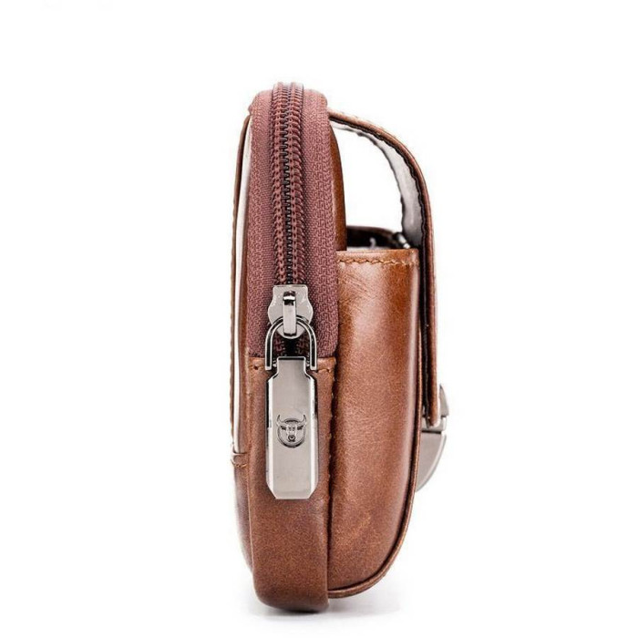 Напоясная сумка-чехол для смартфона YB043 Bull из натуральной кожи. Можно носить на ремне брюк. Изделие имеет отделение на молнии, с кармашком внутри. Лицевая сторона чехла оформлена при помощи кармана с клапаном и металлической защелкой. На задней стороне сумки есть кожаная петля для носки на ремне брюк. Аксессуар очень удобен в носке на каждый день, ведь все мелкие необходимые предметы: телефон, небольшой кошелек и документы будут всегда под рукой. А руки при этом свободны!