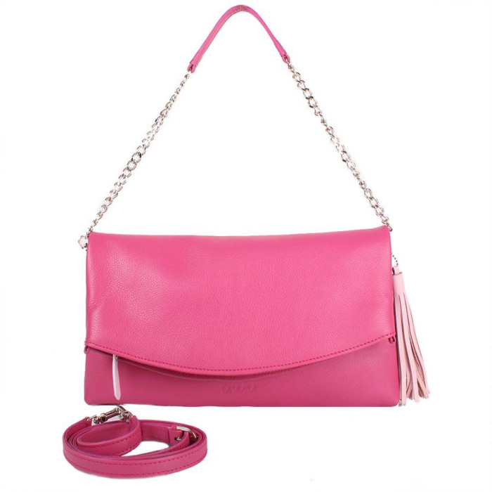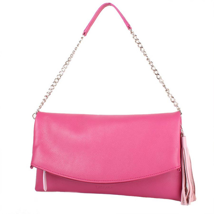 Яркая и нежная, классически-лаконичная и оригинальная – сумочка с такими характеристиками всегда актуальна для женского гардероба. На модель марки LASKARA так просто засмотреться! Она очаровывает насыщенным розовым оттенком, который напоминает о благоухающих под ясным небом полевых и садовых цветах, ягодах малины, безмятежности и солнце. Однотонный, слегка трапециевидный клатч толщиной четыре сантиметра выполнен так, чтобы не просто украшать наряд модницы, но и служить универсальной деталью образа и вмещать достаточное количество вещей. Аксессуар может принимать и деловой характер, и романтичный – для этого к нему прилагается набор из съемной ручки с цепочкой, декоративной кожаной нежно-розовой кисти и плечевого ремня. «Высокий» клапан на сгибе, прорезной карман под ним, элегантные брелоки на бегунках молний, первосортная кожа и качественное изготовление – преимущества этой вещицы разнообразны. Купить сумку-клатч носкую и стильную можно в магазине «OlaBags» по самой выгодной цене.
