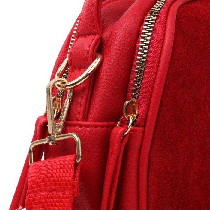 Яркая компактная сумка красного цвета из качественной эко-кожи. Сумка имеет стильный дизайн, вставку из искуственной замши на лицевой стороне, регулируемый наплечный ремень. Модель долгое время остается в идеальном состоянии, такую сумку приятно носить. Может быть отличным вариантом для подарка стильной женщине.