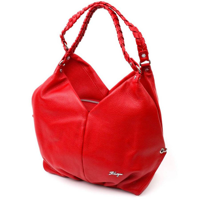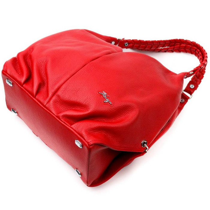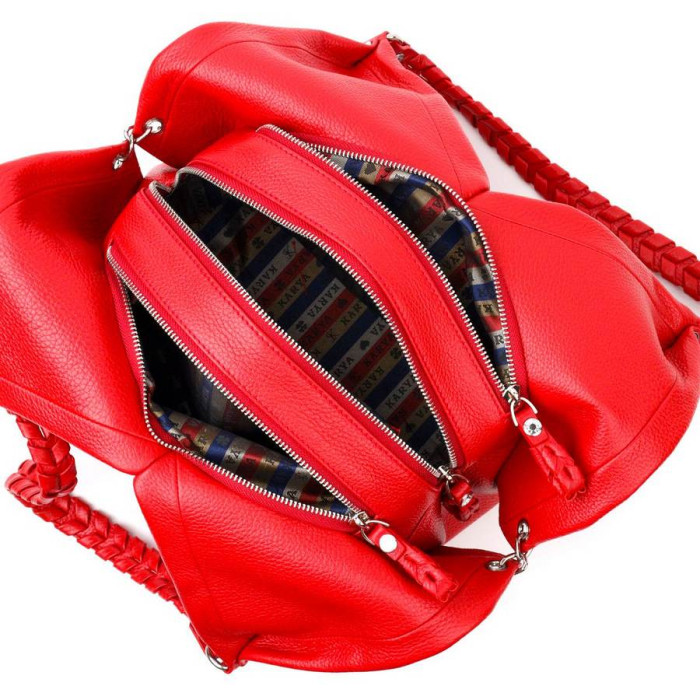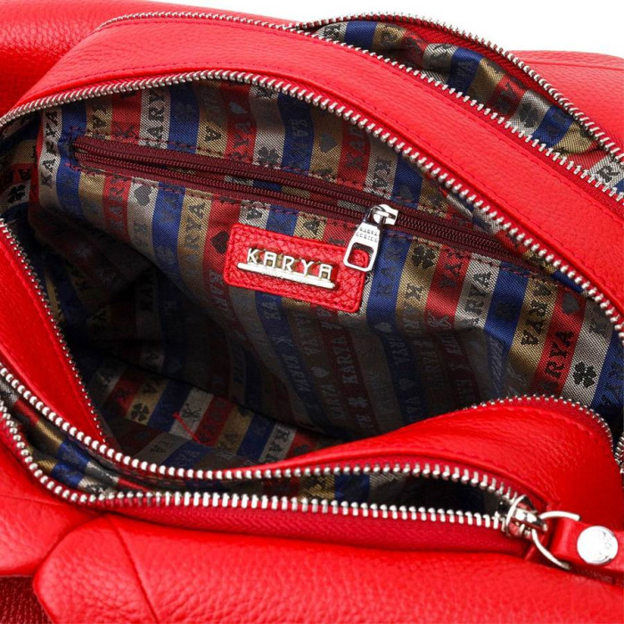 Красивая функциональная женская сумка среднего размера из натуральной кожи, в красном цвете. Фурнитура серебряного цвета. Сумку удобно носить в руке, на плече. Сумка упакована в фирменный текстильный чехол Karya. Сумка из натуральной кожи всегда будет отличным подарком любой женщине.