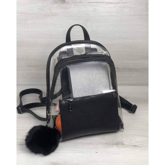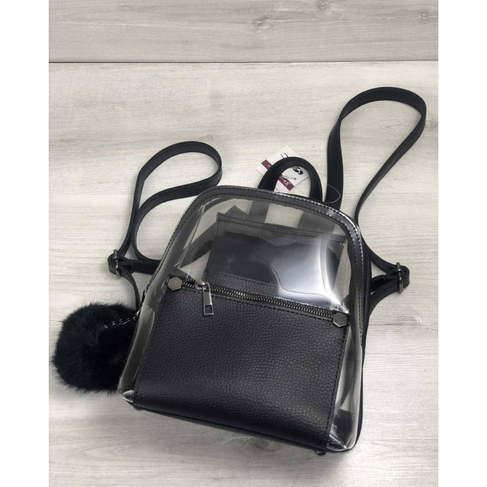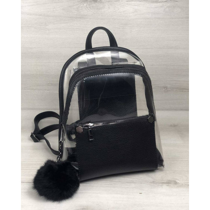 Дополнительно рюкзак украшен пушком из натурального меха. Пушок прикреплен карабином, который легко снимется.
