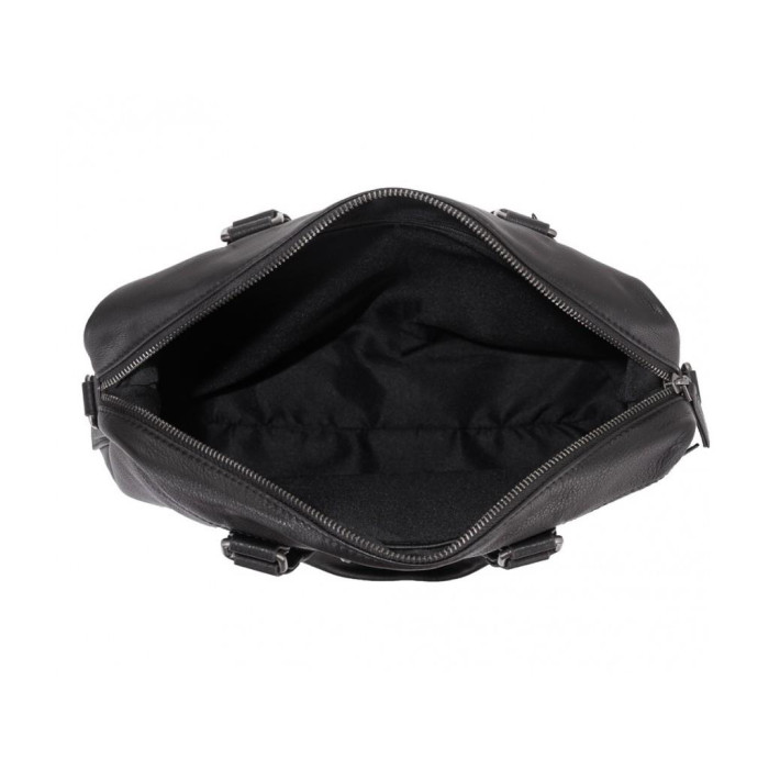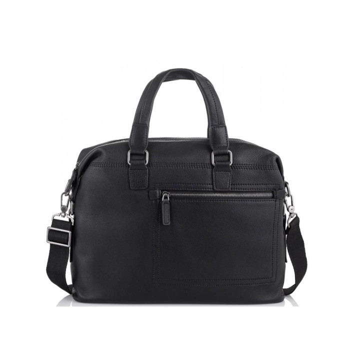 Стильная сумка в классическом исполнении из натуральной кожи с зернистой поверхностью. Одно основное отделение закрывается на молнию и разместило в себе карман открытого типа. С тыльной стороны горизонтальный отсек, спереди небольшой карман на молнии. Эргономичные кожаные ручки для ношения сумки в руке. В комплекте наплечный ремень из текстиля, который крепится на карабины, регулируется по длине и отсегивается при необходимости.