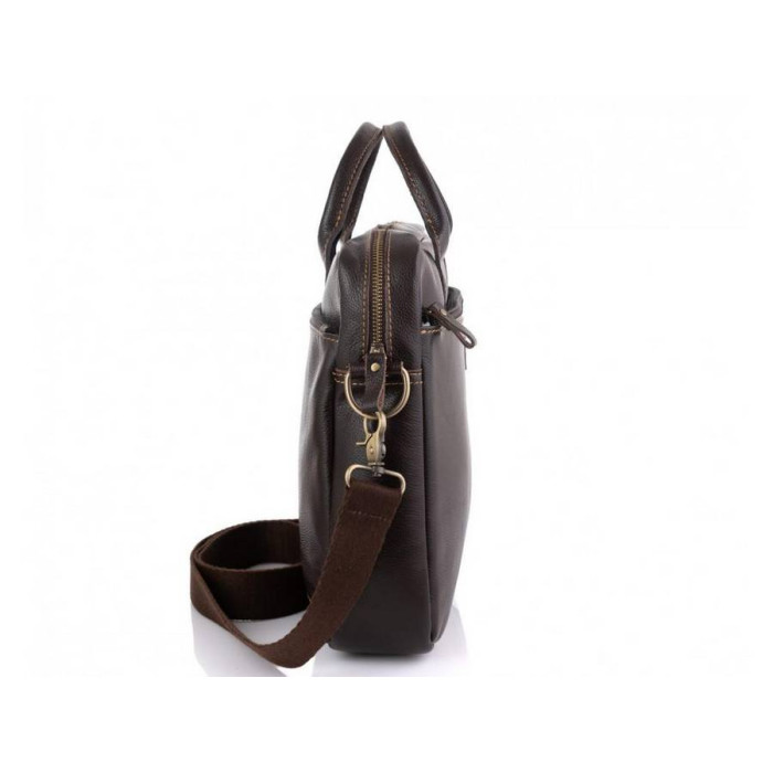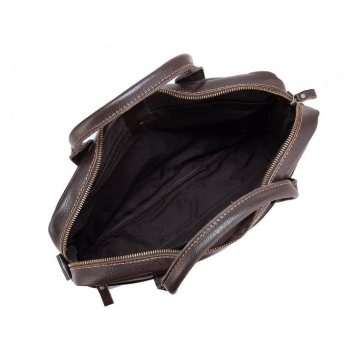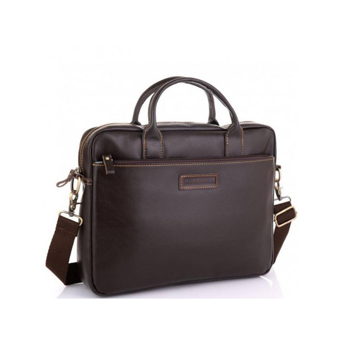 Для носки есть текстильный плечевой ремень и кожаные ручки, а также ручка для закрепления сумки на чемодан с тыльной стороны, фурнитура - темно-золотая. Мужская сумка имеет одно основное отделение на молнии. Карман на молнии с лицевой стороны и карман на молнии с тыльной стороны. Внутри сумки карман для гаджета на кнопке, карман на молнии и два кармана открытого типа для мелочей.