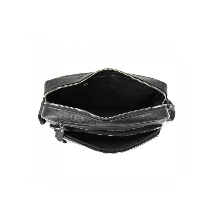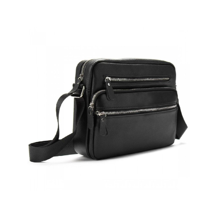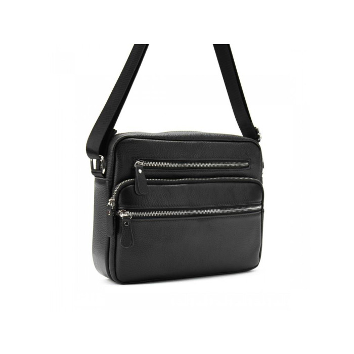 Сумка через плечо Tiding Bag M56-9988A из натуральной кожи в черном цвете, зернистой фактуры.