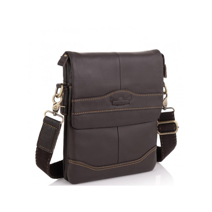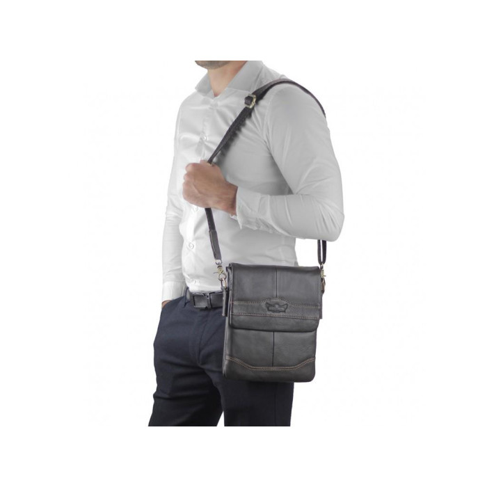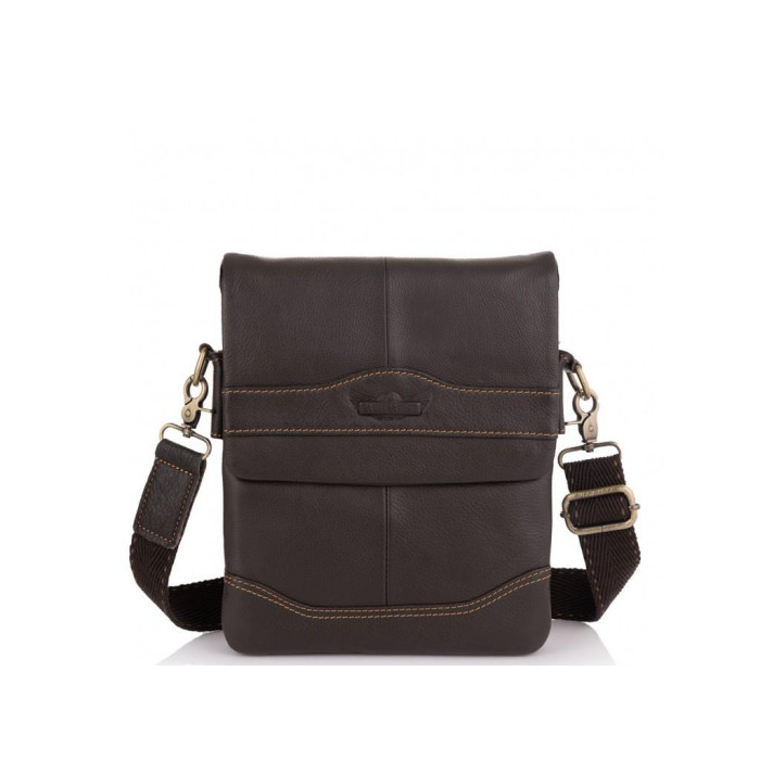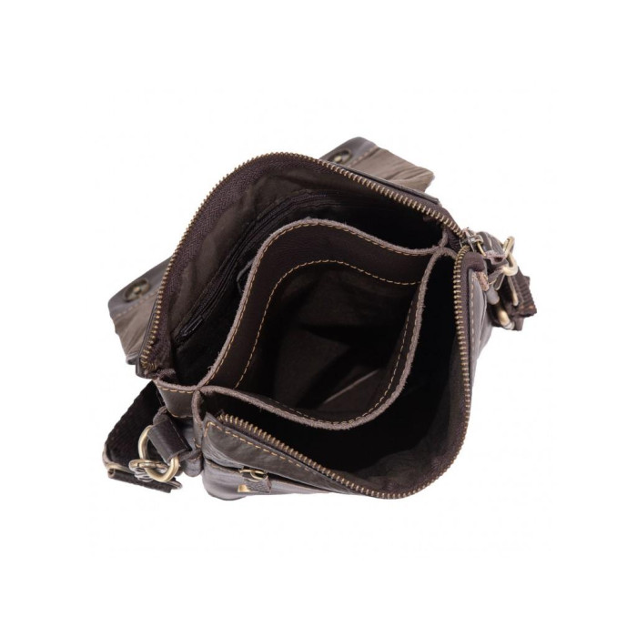 Коричневый мужской мессенджер Ruff Ryder. Имеет тканевый плотный плечевой ремень, который регулируется по длине, он фиксируется на надежной металлической фурнитуре приглушенно золотого цвета. Сумка через плечо имеет одно основное отделение на молнии, оно закрывается клапаном на двух кнопках. С лицевой стороны есть карман на молнии и карман открытого типа, с тыльной стороны карман на молнии. Внутри сумка разделена на две части карманом открытого типа, также есть карман на молнии.