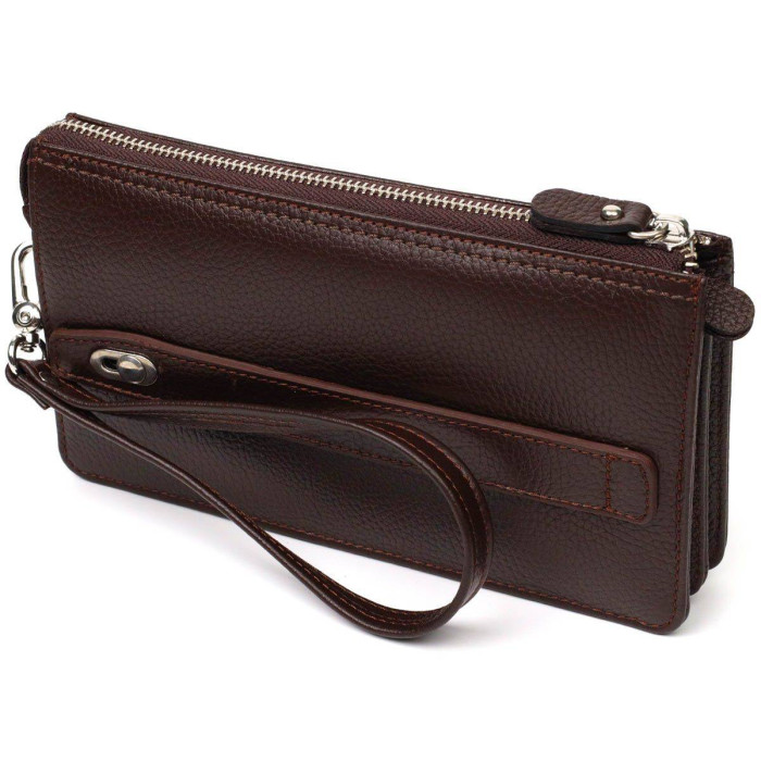 Качественный мужской клатч из натуральной мягкой кожи, закрывается изделие на молнию, внутри можно без проблем размещать бумажные банкноты, банковские карты и даже смартфон. Аксессуар состоит из двух отделений для купюр, двух прилегающих карманов, шести слотов для кредиток и монетницы на молнии. Имеется также ручка для ладони на тыльной стороне клатча и съемный кистевой ремень. Продается клатч в красивой коробке от производителя. Качественный и надежный клатч - именно такой аксессуар должен быть у каждого уважающего себя человека.