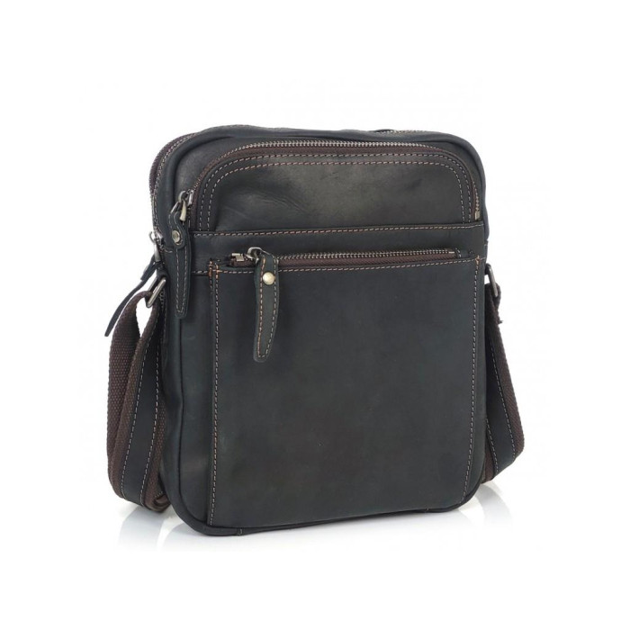 Мужской мессенджер Tiding Bag S-JMD4-008C изготовлен из натуральной кожи коричневого цвета.
