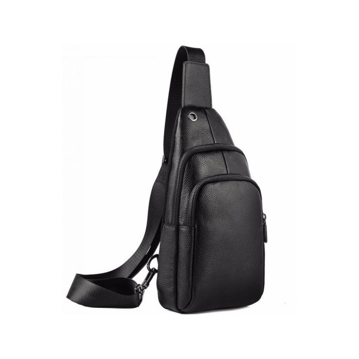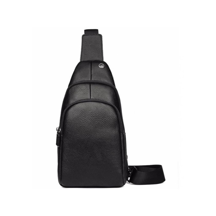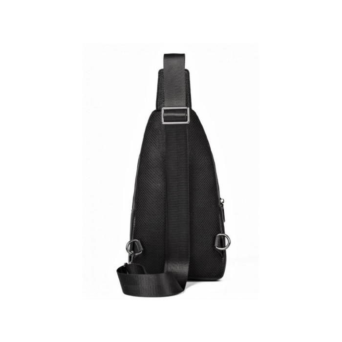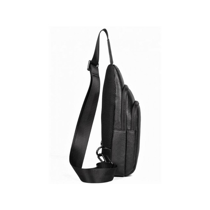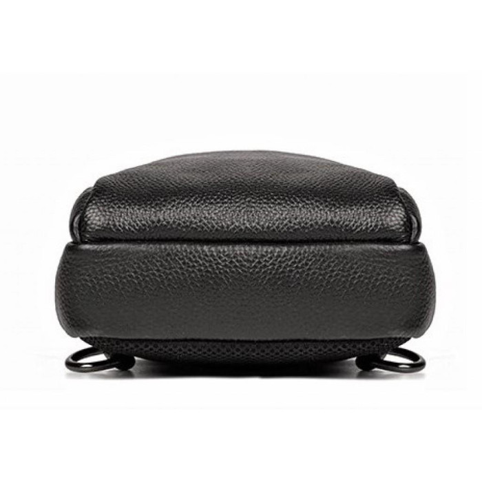 Мужская кожаная сумка-рюкзак с одной шлейкой. Два отделения на молниях темного оттенка. Внутри плотная текстильная подкладка и небольшие карманы. Плечевой ремень регулируется по высоте посадки и перестегивается на левую или на правую сторону с помощью карабина и металлических петель. Мягкая дышащая спинка для максимального комфорта.
