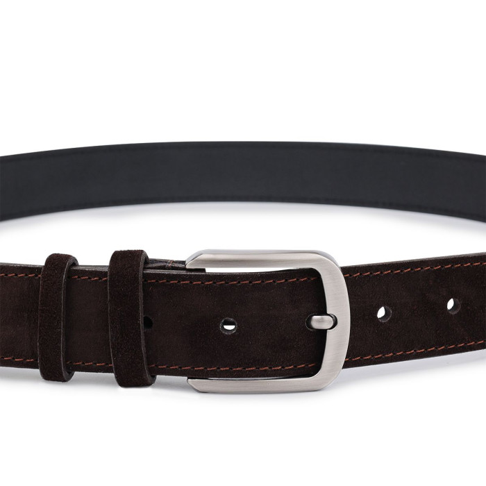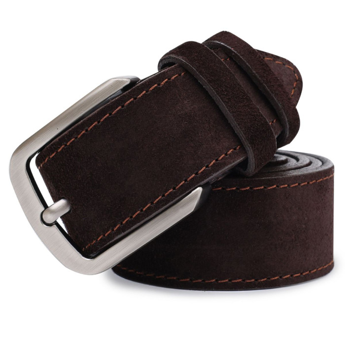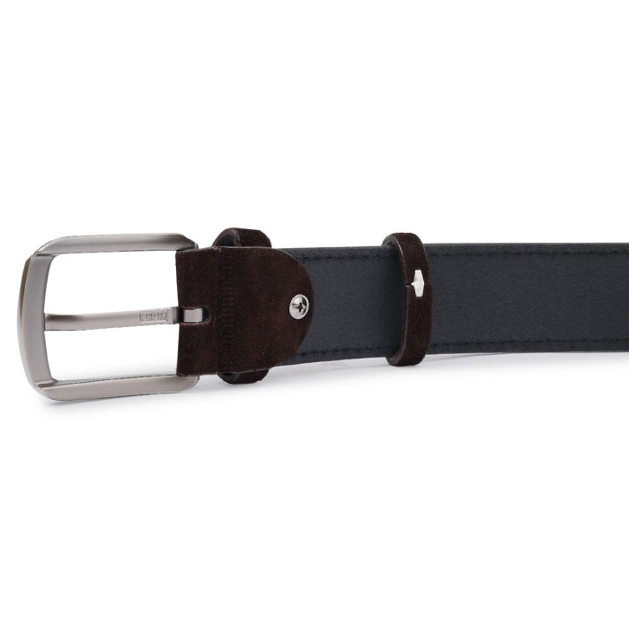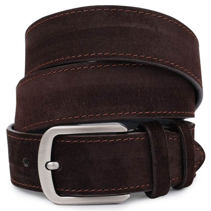 Стильный и практичный мужской замшевый ремень, который станет Вам просто незаменимым аксессуаром в гардеробе. Выполнен из натуральной высококлассной кожи с повышенной прочностью. Пряжка изделия – классическая, фактура – приятная на ощупь, а цвет - насыщенный шоколадный.
