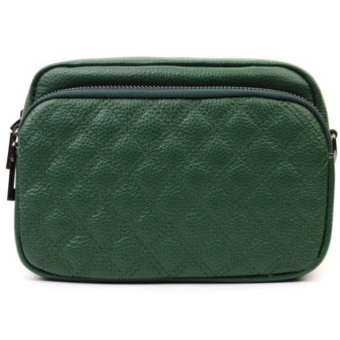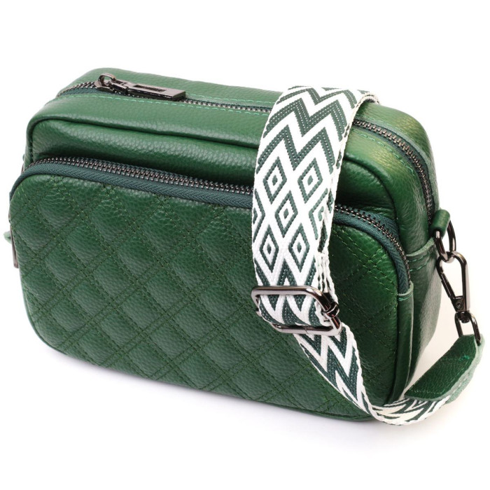 Красивая сумка в необычном цвете для женщин из натуральной кожи. Сумка прошита на лицевой стороне трендовыми ромбами, что придает аксессуару стиля. Носить сумку можно на плече и через плечо, также можно носить как клатч под рукой, для этого можно снять текстильный ремешок.