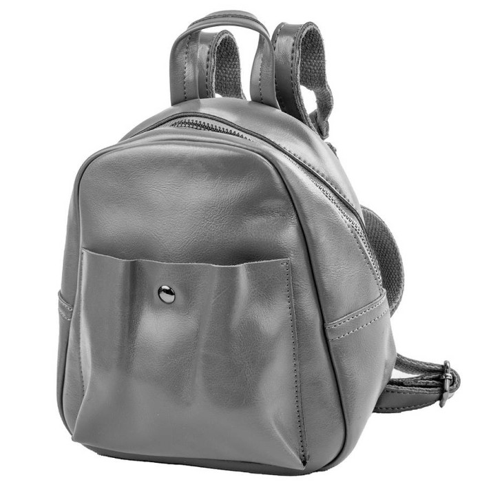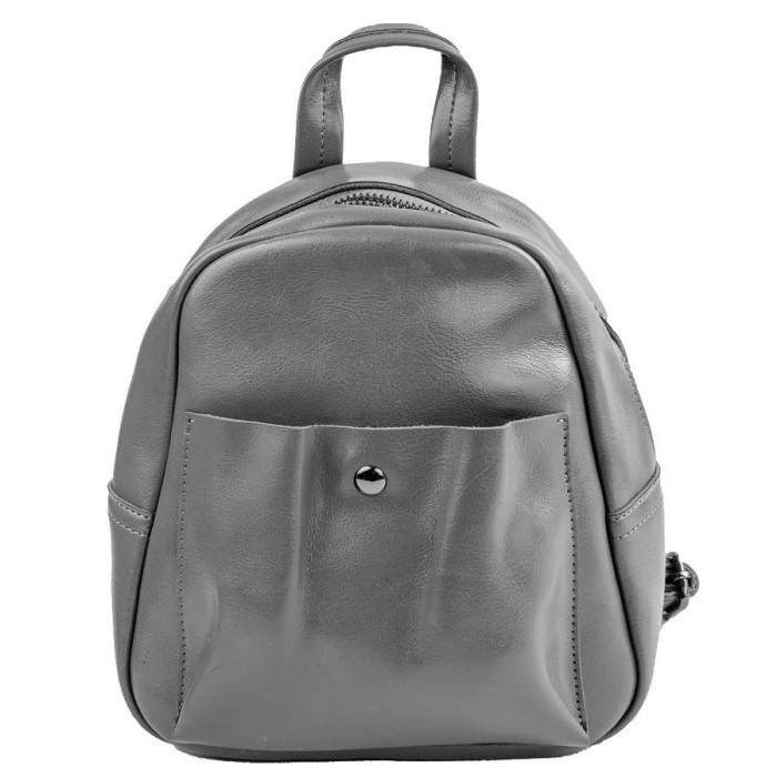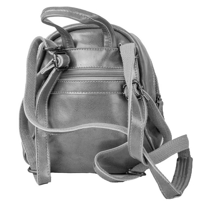 Размеры (X*Y*Z): 19 (в самом широком месте) х 20 х 11 см. Материал изделия: кожа. Цвет: серый. Цвет фурнитуры: черное серебро. Количество основных отделений: 1. Внутри есть 1 карман на молнии и накладной. На тыльной стороне расположен 1 карман на молнии. На лицевой стороне расположен карман магнитной кнопке. Рюкзак имеет плотную ручку, чтобы переносить изделие в руке или повесить на крючок. Дно изделия уплотненное. Рюкзак закрывается при помощи молнии . Изделие упаковано в полиэтиленовый пакет. Документы формата А4 не помещаются в рюкзак. Страна происхождения торговой марки VALIRIA FASHION и страна-производитель - Китай. Гарантия: 3 месяца.