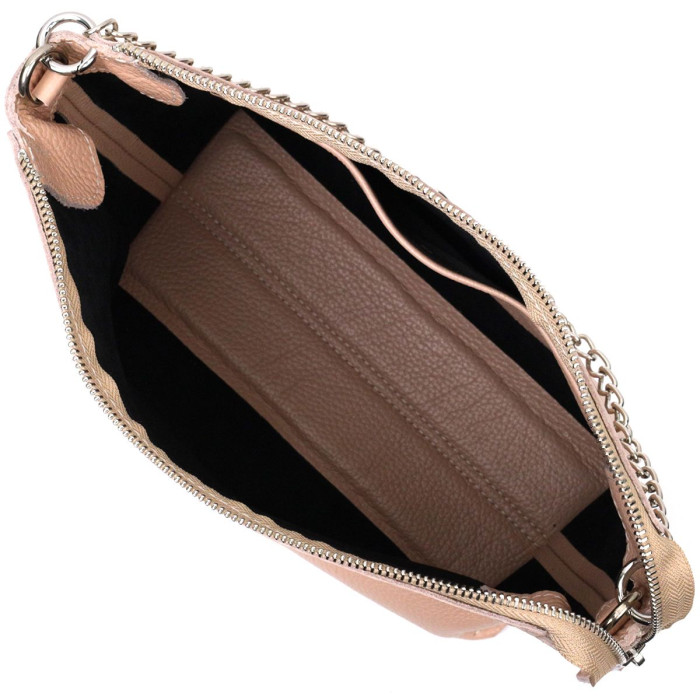 Люксовая женская сумка из натуральной качественной кожи. Аксессуар состоит из основного отделения, что закрывается на молнию и кармана открытого типа внутри. Выполнена из прочной и износостойкой натуральной кожи. Носить данную сумку можно на плече при помощи регулируемого текстильного ремня, а также в руках при помощи съемного ремня-цепочки. Упакована данная сумка в красивый фирменный чехол с ручками.