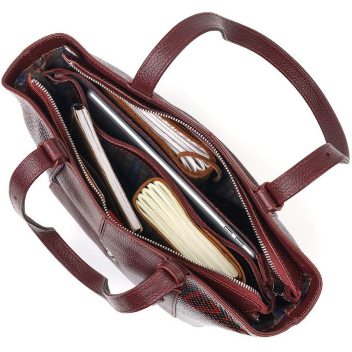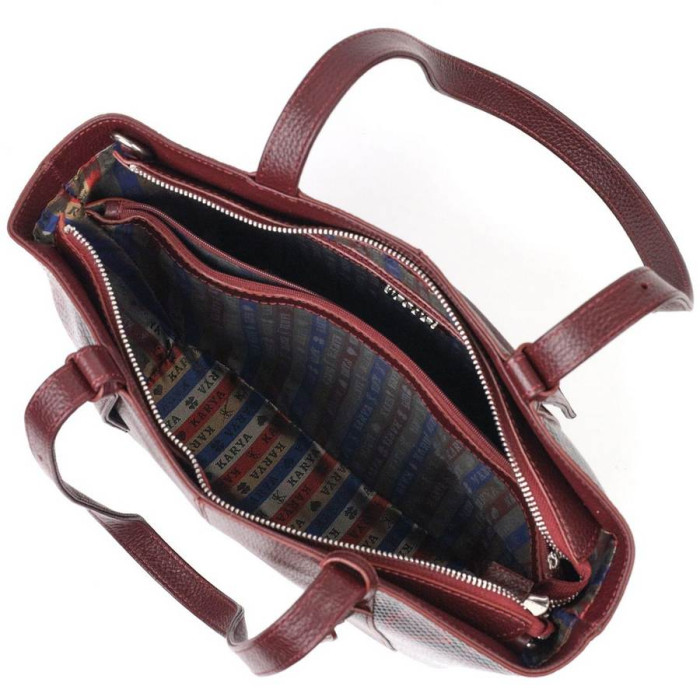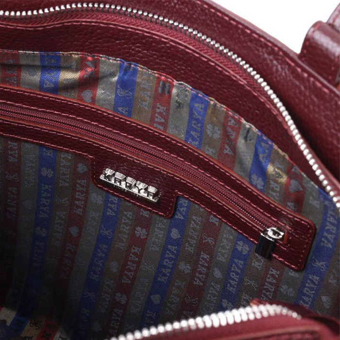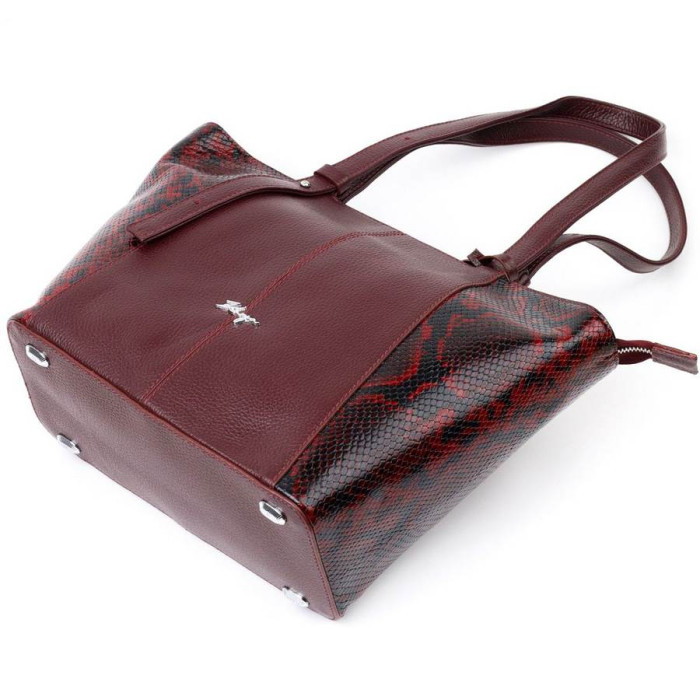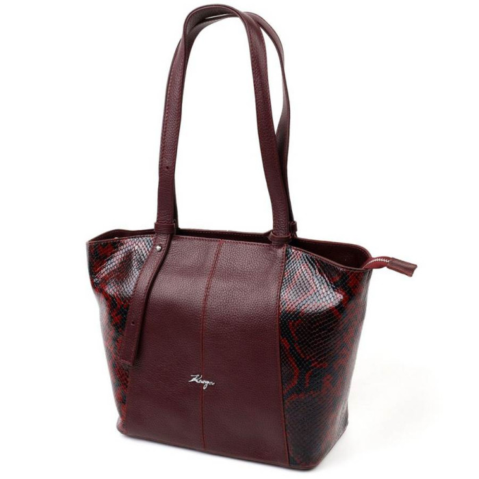 Интересная женская сумка из натуральной фактурной кожи с тиснением под змею и вставкой с мелкозернистой натуральной кожи. Сумка функциональна и удобна в эксплуатации, качественная фурнитура не только дополняет стильный дизайн сумки, но и защищает изделие. Аксессуар упакован в фирменный текстильный мешок Karya. Сумка из натуральной кожи всегда будет отличным подарком любой женщине.