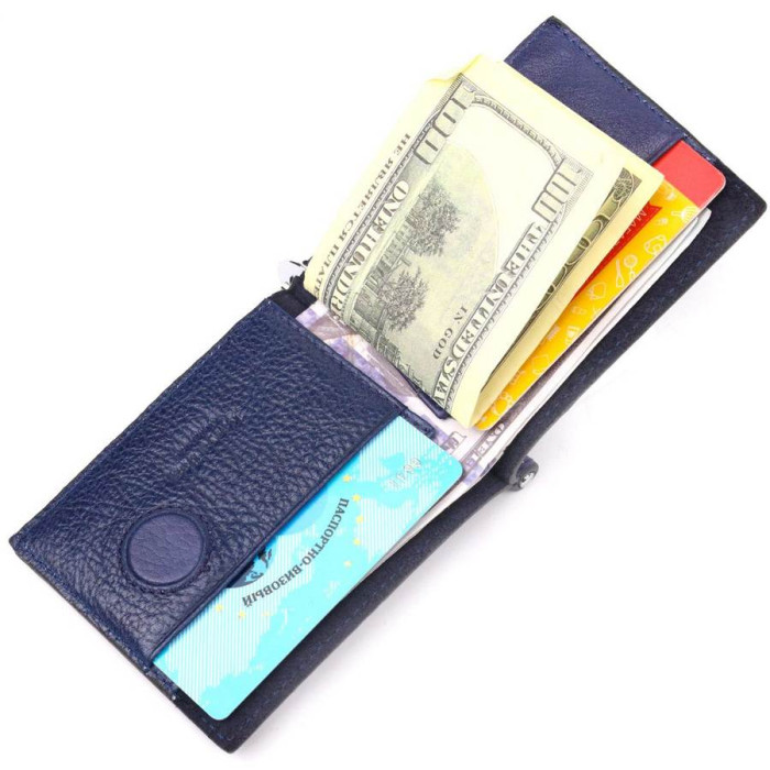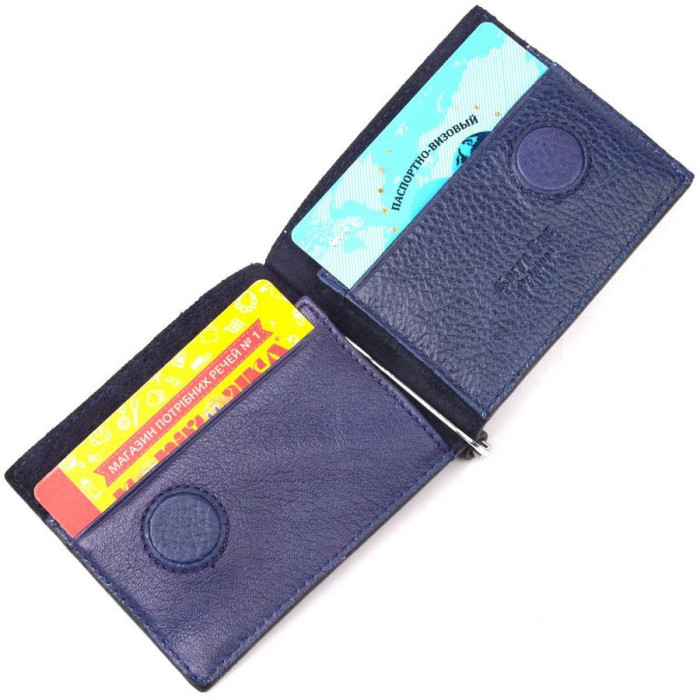 Отличный мужской зажим, из натуральной кожи, в красивом синем цвете. Изделие очень компактно, но при этом купюры всех номиналов помещаются отлично. Необходимый кожаный аксессуар, который отлично подчеркнет стиль и статус своего владельца. Аксессуар упакован в фирменную коробочку. Изделия из натуральной кожи всегда будут отличным подарком для близкого человека.