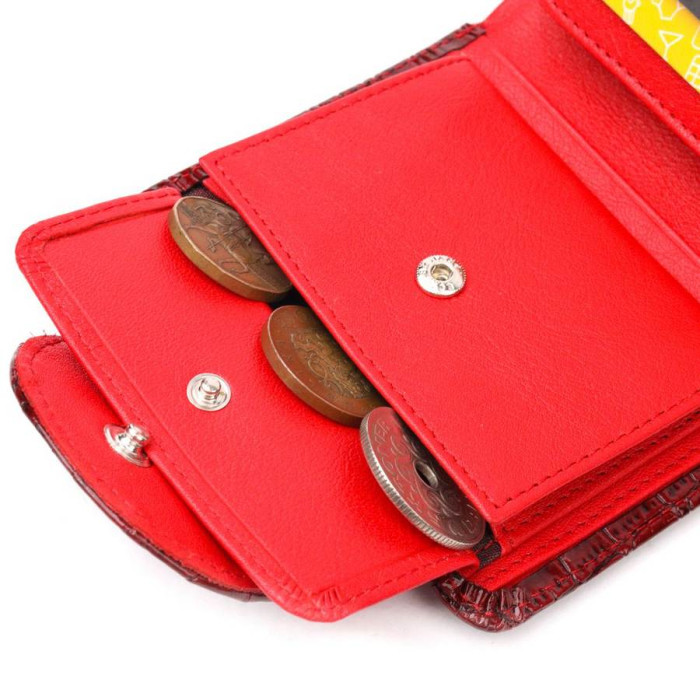 Яркий женский кошелек из натуральной кожи с тиснением под крокодила снаружи и в гладкой натуральной коже внутри. Складывается аксессуар пополам, закрывается клапаном на кнопку. Качественная фурнитура дополняет и украшает изделие. Такой кошелек из натуральной кожи - это идеальный вариант на каждый день для тех, кто ценит качество, удобство и комфорт, а также будет отлично дополнять Ваш повседневный образ. Упакован аксессуар в фирменную коробку и пакет бренда. Изделия из натуральной кожи всегда будут отличным подарком для близкого человека.