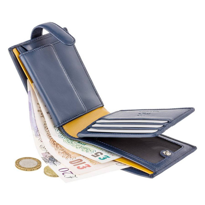 Характеристики - Кошелек мужской Visconti PM102 Leonardo c RFID (Black Blue) Материал натуральная ..