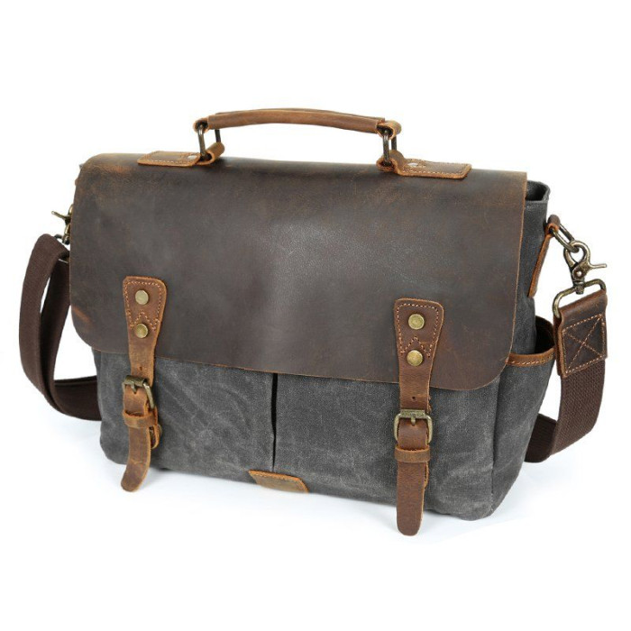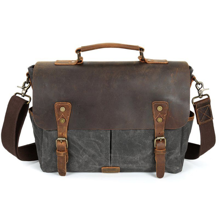 Вместительный винтажный мужской портфель в классическом стиле. С таким порфтелем вы будете выглядеть солидно. Модель изготовлена из вощеной парусины в сочетании с натуральной винтажной кожей. В изделие легко поместится ноутбук. Ткань очень крепкая. В дизайн сумка дополнена ремешками на клапане. Модель имеет множество удобных карманов и прекрасно подойдет для повседневной жизни. Портфель сочетается с любым вашим стилем. Такой портфель станет хорошим и доступным подарком для любого мужчины. Изделие станет находкой для деловых мужчин.