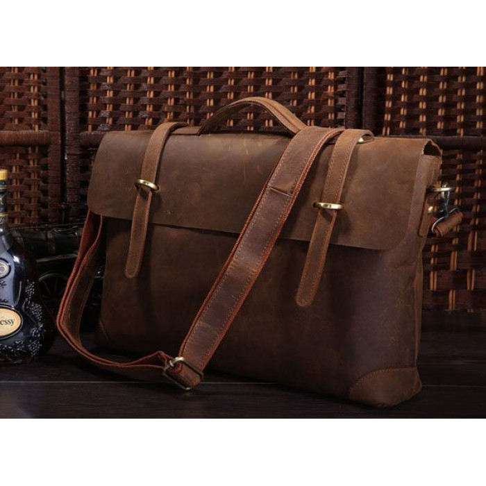 Стильный портфель из натуральной кожи выполнен в винтажном стиле. Портфель имеет превосходный дизайн, который разработан с учетом последних тенденций моды. Портфель можно носить в руке и с помощью регулируемого плечевого ремня. Изделие ориентировано на людей которые предпочитают изделия выполнены в стиле Vintage.