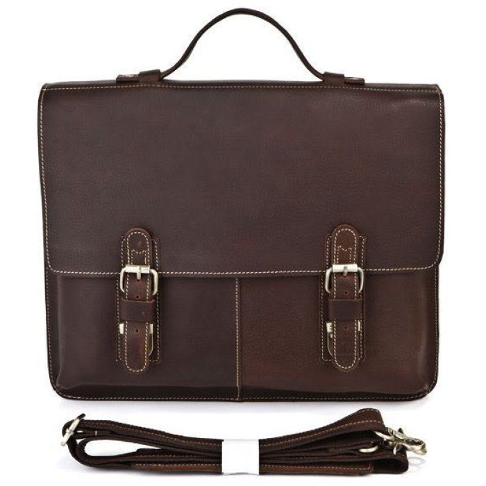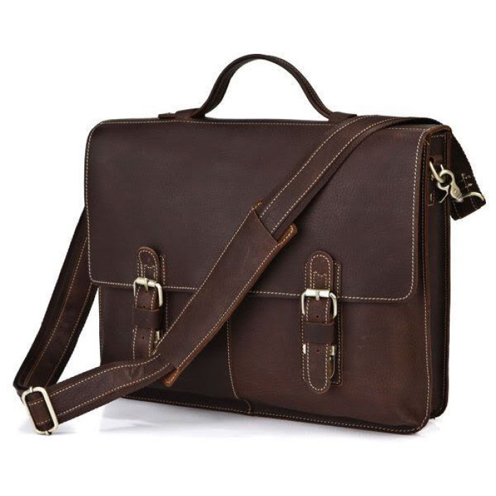 Добротный мужской портфель из натуральной толстой кожи. Аксессуар изготовлен безупречно: швы ровные, аккуратные. Портфель имеет благородный коричневый цвет. Фурнитура в цвет меди. Носиться изделие будет долгое время и при этом сохранит свой презентабельный внешний вид. Такой портфель может служить подарком мужу, отцу или руководителю.