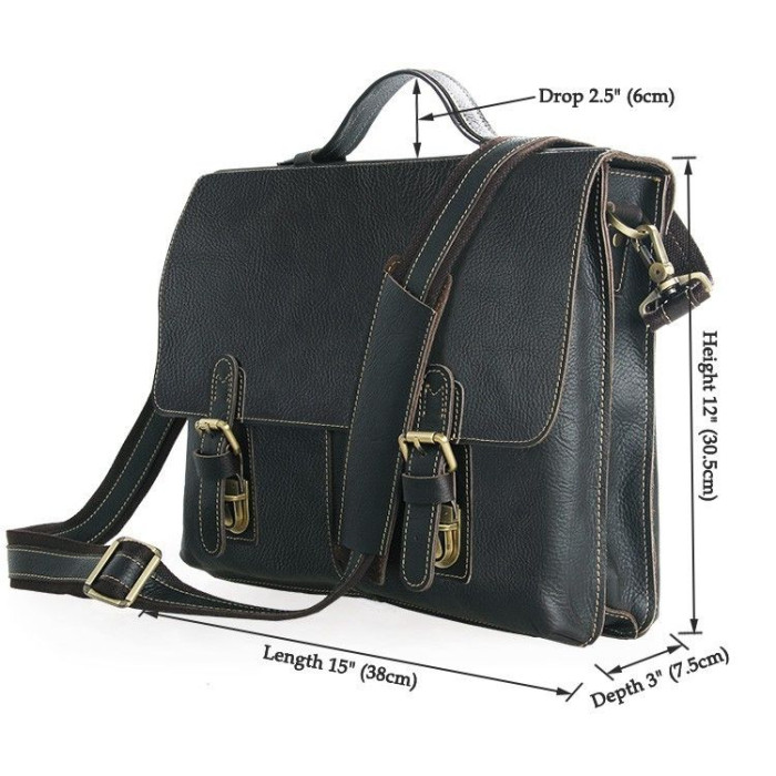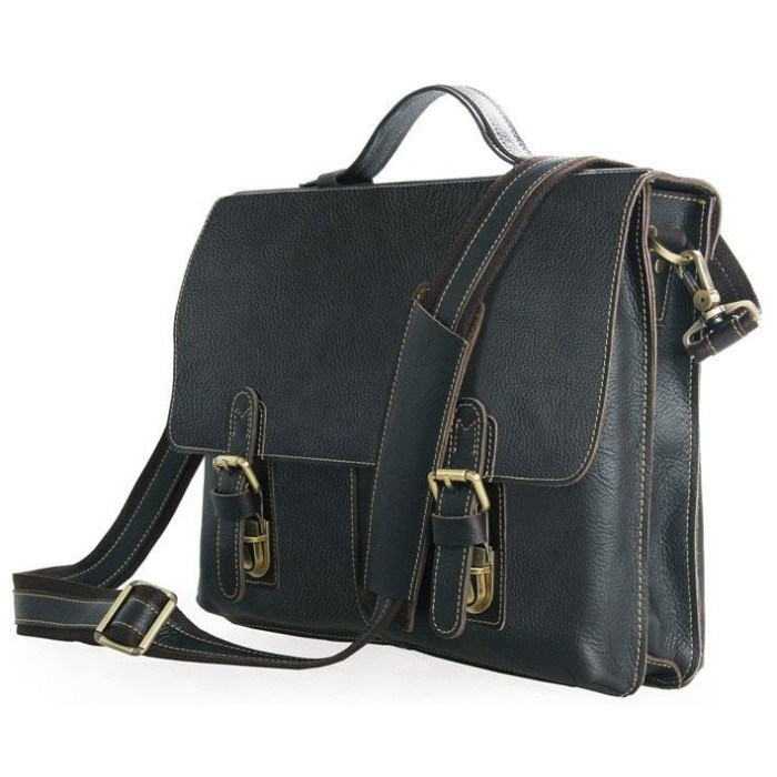 Такой портфель можно переносить в руке при помощи удобной кожаной ручки, а также через плечо (в комплекте съемный, регулируемый плечевой ремень).