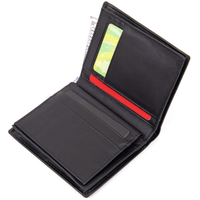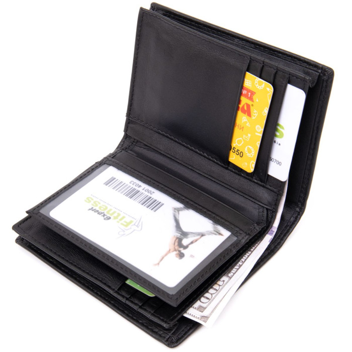 Качественное портмоне-картхолдер с достаточным количеством ячеек для кредиток. Изделие идеально сочетает в себе два самых важных аксессуара современного человека. Картхолдер очень вместительный. В модели отсутствует застежка и кармашек для монет. В портмоне поместится достаточное количество купюр разного номинала. Аксессуар выполнен в мягкой коже и в классическом черном цвете с простым и непринужденным дизайном. В комплекте идет пылезащитный чехол. Картхолдер - лучший подарок как для себя, так и на подарок.