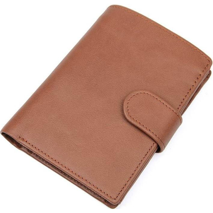 Вместительный мужской кожаный бумажник коричневого цвета. Кошелек надежно прошит светло-коричневой нитью. Аксессуар упакован в текстильный пылезащитный мешочек белого цвета.