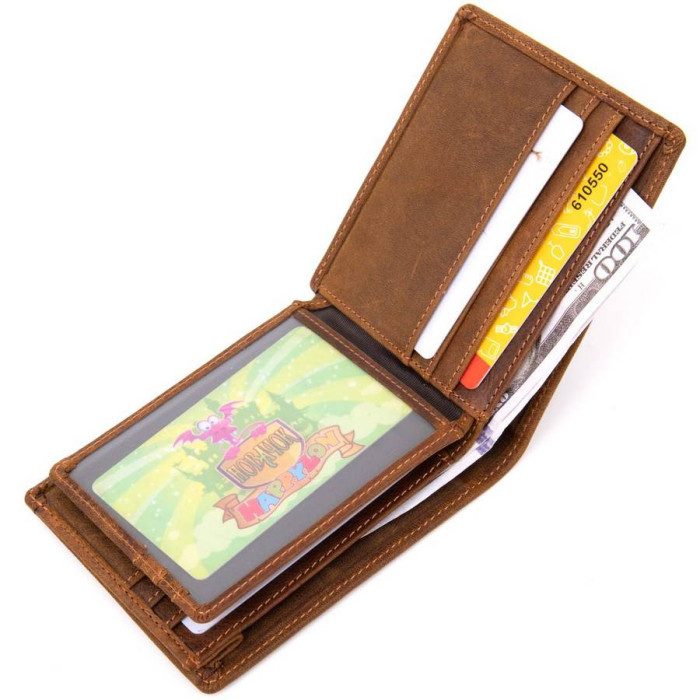 Тонкое компактное матовое портомне из натуральной кожи без застежки. Изделие имеет коричневый цвет с рыжим оттенком. Внутри достаточно ячеек для кредиток. Изделие продумано для современного человека. Который отдает предпочтение карточкам и носит минимум налички. Портмоне поместится в маленькую сумку или карман брюк. Кошелек станет прекрасным подарком для ваших близких. Портмоне имеет весь самый необходимый функционал. Кошелек очень приятный на ощупь. Подойдет для тех, кто не любит больших аксессуаров.