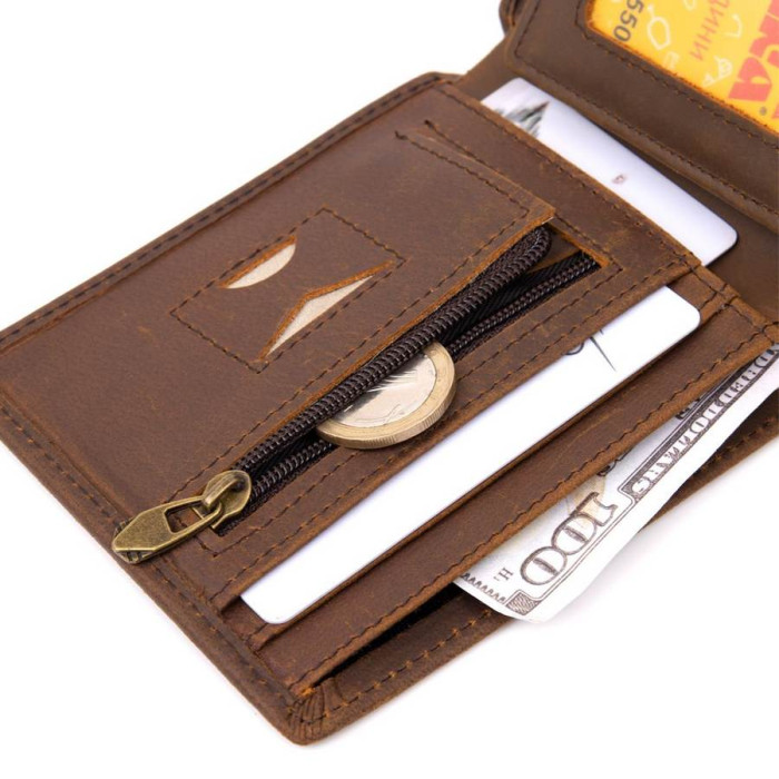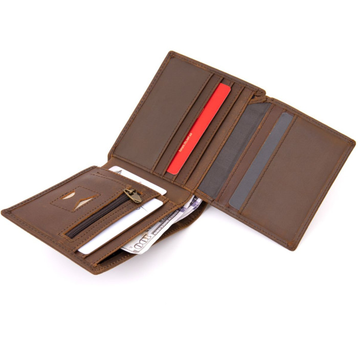 Тонкое компактное матовое портмоне из натуральной кожи без застежки. Изделие имеет коричневый насыщенный цвет. Внутри достаточно ячеек для кредиток и два отделения для купюр. Аксессуар имеет современный дизайн. Портмоне поместится в маленькую сумку или карман брюк. Кошелек станет прекрасным подарком для ваших близких. Портмоне имеет весь самый необходимый функционал. Кошелек очень приятный на ощупь. Подойдет для тех, кто не любит больших аксессуаров.