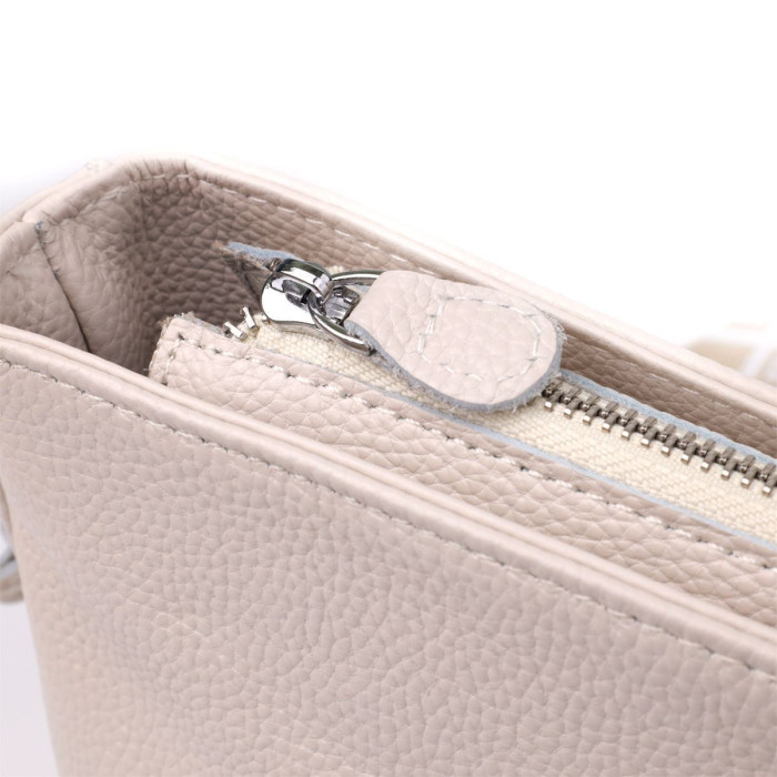Элегантная сумка из натуральной кожи в классическом белом цвете — воплощение сдержанного стиля и универсальности. Модель оснащена одним основным отделением, которое закрывается на молнию, обеспечивая надежную защиту ваших вещей. Внутри предусмотрены два удобных кармана: потайной карман на молнии — для хранения ценных мелочей, и открытый — для предметов, к которым необходим быстрый доступ.