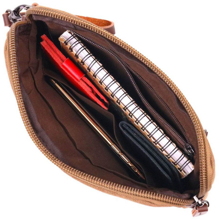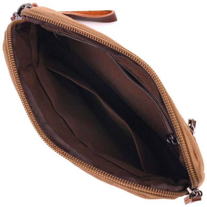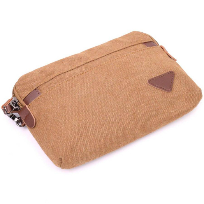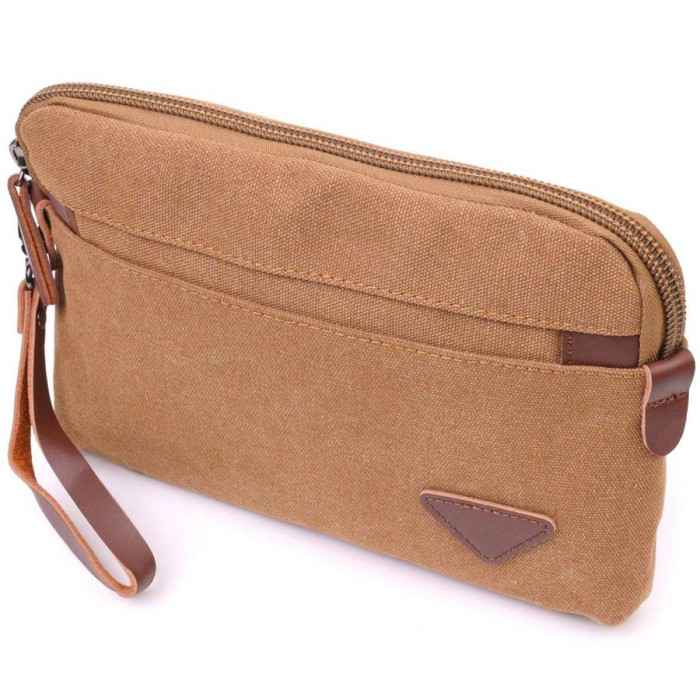 Практичная текстильная барсетка в коричневом цвете, она имеет классический и удобный дизайн с практичным функционалом. Аксессуар имеет одно основное отделение, два внутренних кармана, один из которых на молнии, уплотненная одна стенка, съемный кистевой ремень. В барсетку помещается довольно много вещей, а наличие карманов поможет вам идеально их разложить. В сочетании с качественной фурнитурой и крепкой подкладкой барсетка прослужит Вам не один год. Изделие станет прекрасным подарком для любого мужчины.