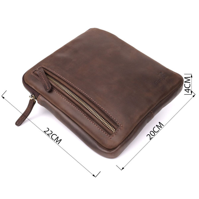 Стильная мужская вертикальная сумка SHVIGEL выполнена из натуральной коричневой винтажной кожи, которая со временем приобретает благородный оттенок и шарм. Компактный размер и продуманное внутреннее наполнение делают аксессуар практичным и удобным для повседневного использования.