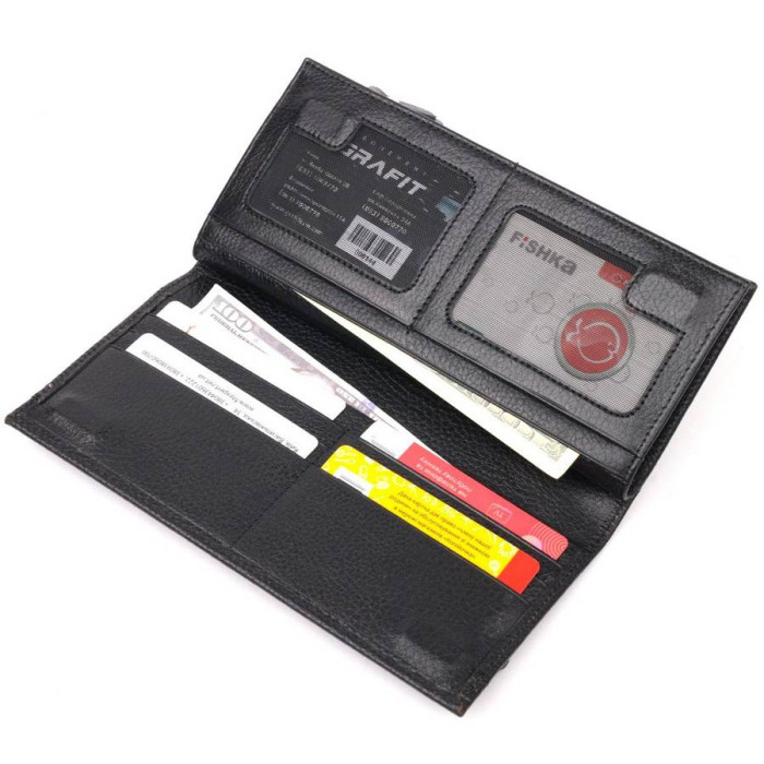 Стильный женский кошелек из натуральной кожи, в классическом черном цвете. На лицевой стороне блок для карточек, который прошит белой нитью для декора и закрывается хлястиком на кнопку. Внутри отделения для карт и документов что закрывается на магниты. Отделение на молнии для купюр без сложения. Упакован аксессуар в фирменную коробку и пакет бренда. Изделия из натуральной кожи всегда будут отличным подарком для близкого человека.