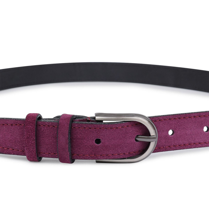 Превосходный женский замшевый ремень в изумительно красивом фиолетовом цвете. Имеет классическую пряжку и приятную фактуру. Такой ремень, несомненно, станет выразительным акцентов любого образа. Материал изготовления – натуральная износоустойчивая кожа. Для подарка любимой женщине лучшего ремня просто не найти!