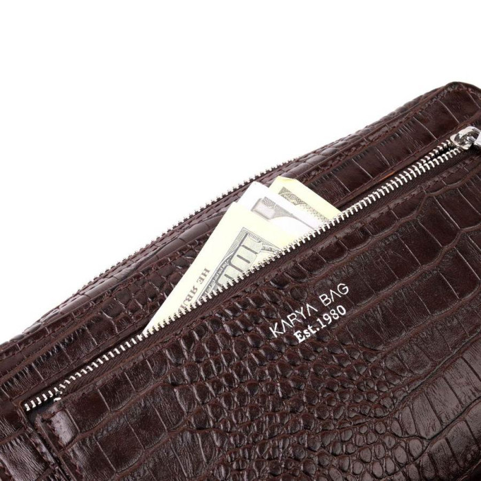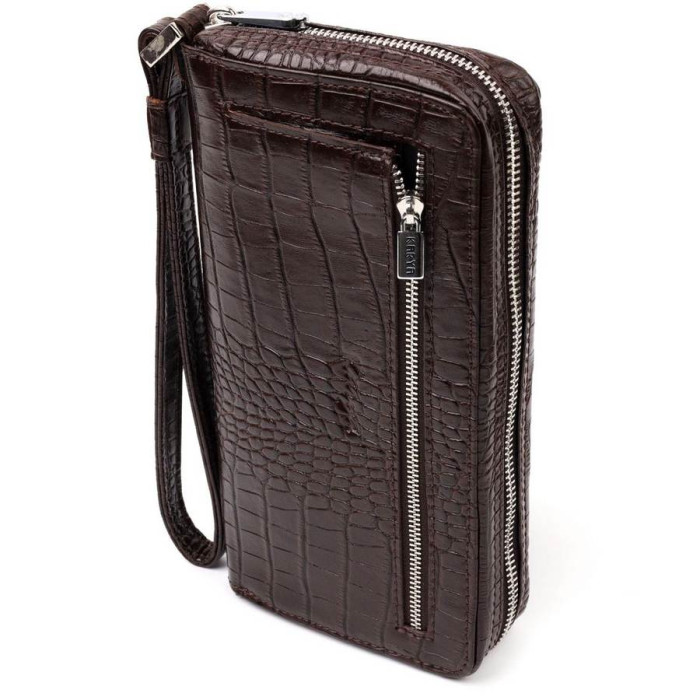Превосходный мужской клатч из натуральной кожи с тиснением под крокодила, с использованием добротного текстиля (внутренняя подкладка). Носится с помощью ремешка на запястье или просто в руке. Используется качественная фурнитура цвета серебра.