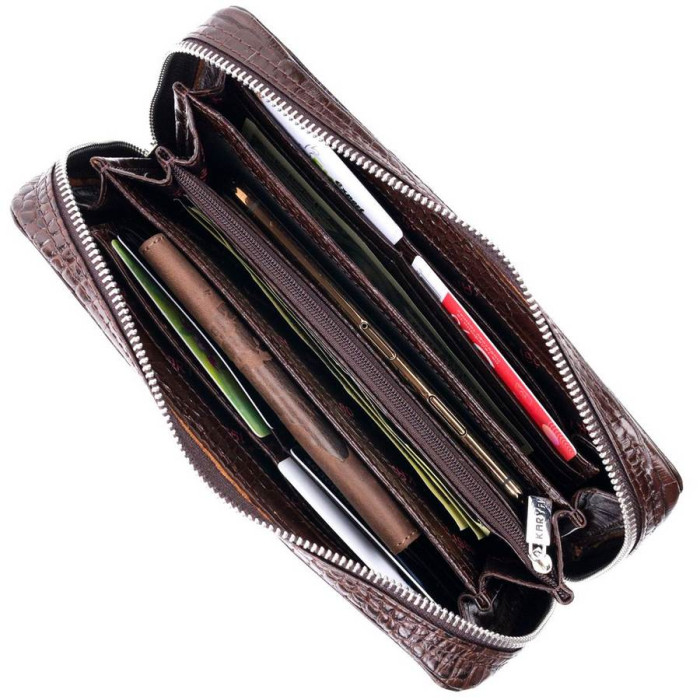 - внутри: карман-перегородка на молнии, шесть открытых карманов, 12 слотов для кредитных карт;
