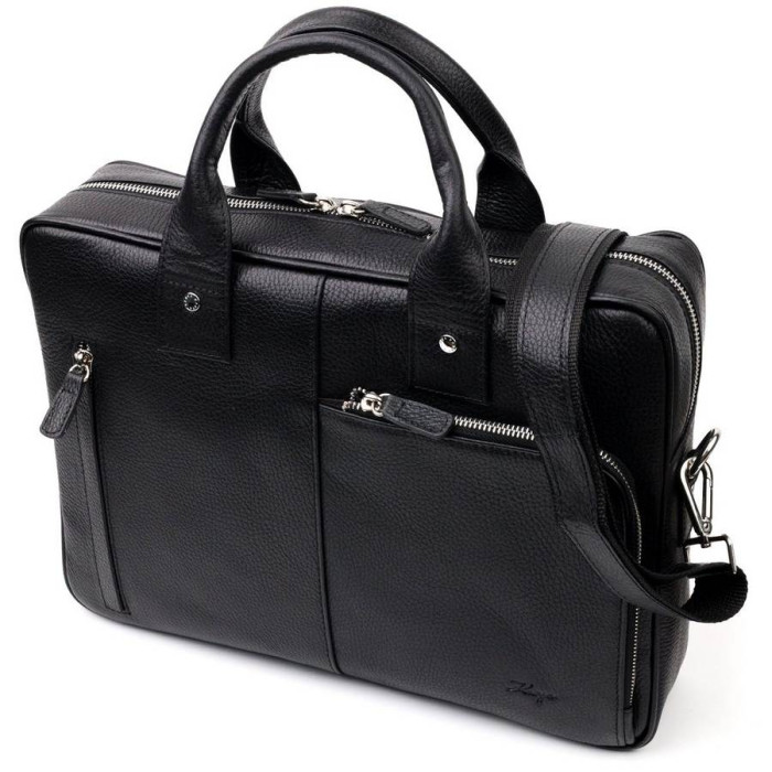 Многофункциональный портфель из натуральной кожи. Удобная и многофункциональная модель. Модель дополнена фурнитурой серебряного цвета, плюс резиновые ножки для защиты внешнего дна сумки. Внутри сумки качественная подкладка. Сумку можно переносить в руке при помощи удобных кожаных ручек, а также через плечо (в комплекте съемный, регулируемый плечевой ремень, который выполнен в комбинации текстильного материала и натуральной кожи). Будет идеальным вариантом для подарка близкому человеку.
